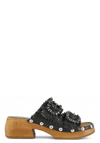 La zeppa in pelle intrecciata è il modello ideale per le amanti di uno stile retrò in chiave seventies. La fascia anteriore ha i profili sfrangiati e il cinturino con fibbietta alla caviglia è in pelle laminata. Da abbinare a panta palazzo o abiti alla caviglia in maglina è perfetta per look giorno pratici ma sofisticati. Di sera sono perfette con completi foulard dal taglio ampio e leggero.