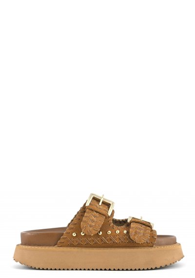 Zeppa pelle intrecciata con cinturino